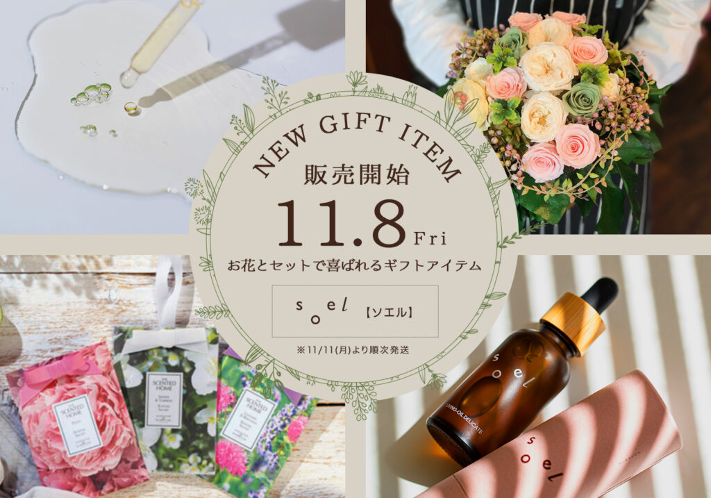 11月8日(金)よりお花とセットで喜ばれるギフトアイテムsoel商品の販売を開始いたします♡